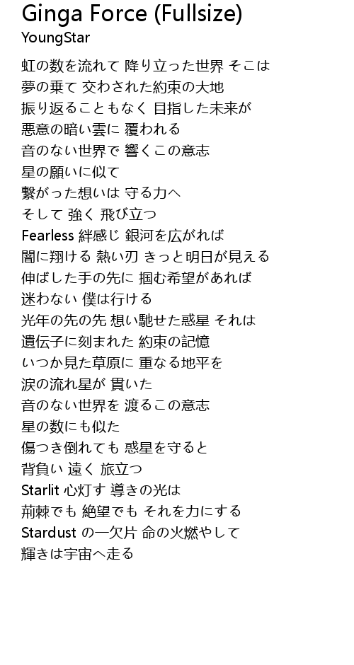 | [01:02.880] | Fearless 絆感じ 銀河を広がれば |