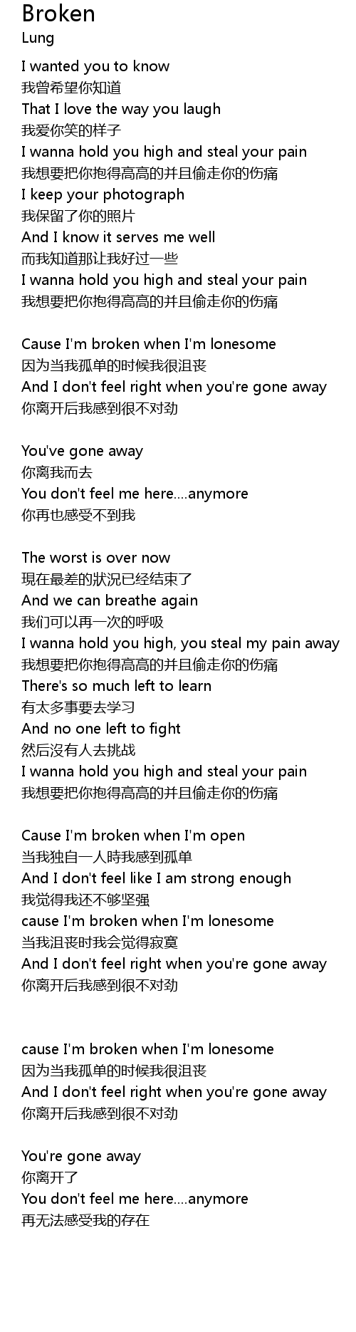 | cause I'm broken when I'm lonesome | |