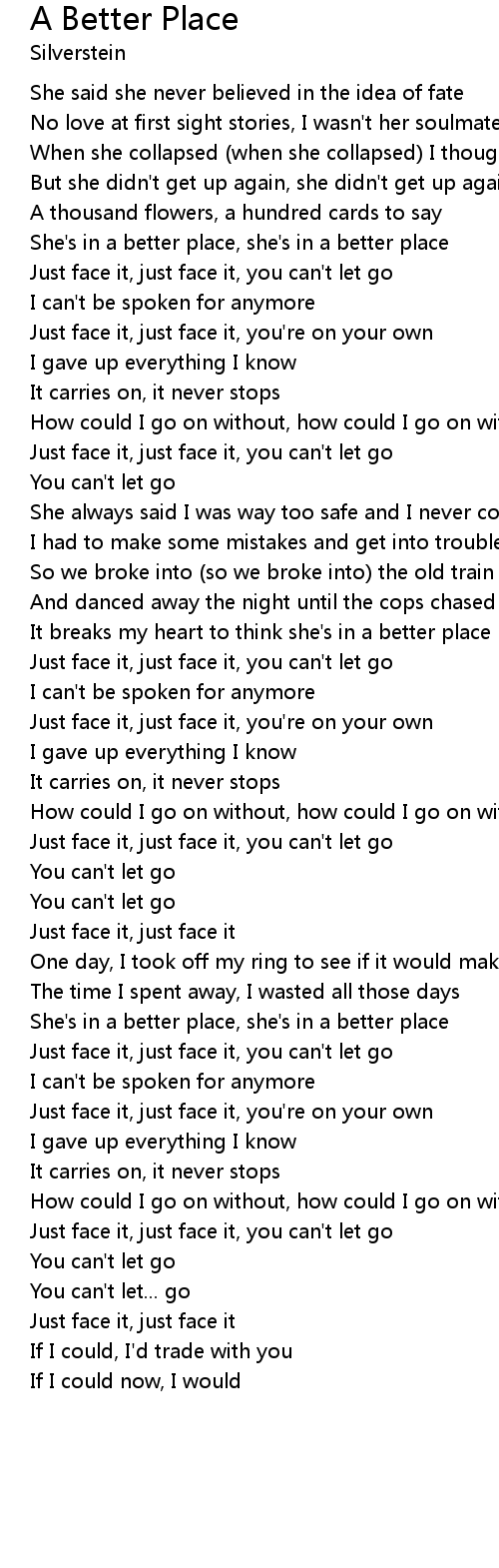 She's in a better place, she's in a better place |