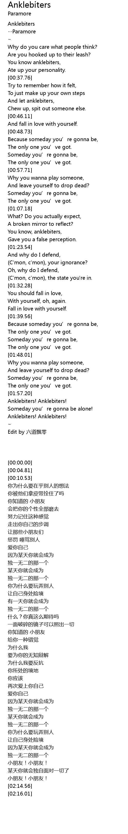 | [02:16.01] | Edit by 六道飘零 |