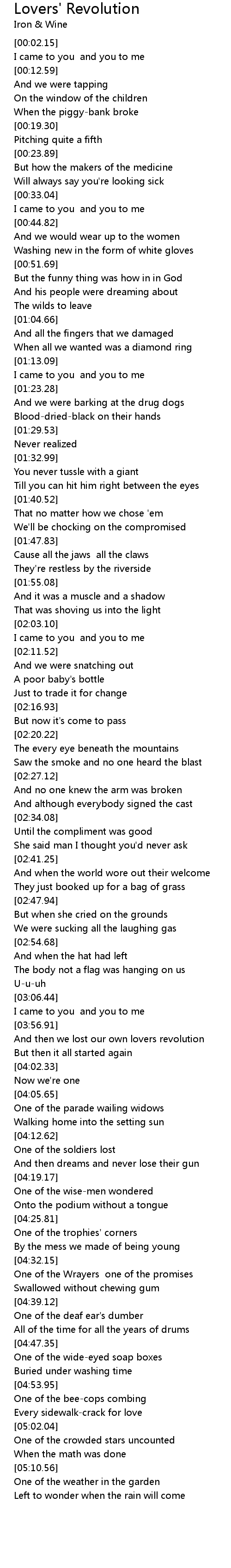 And then we lost our own lovers revolution |