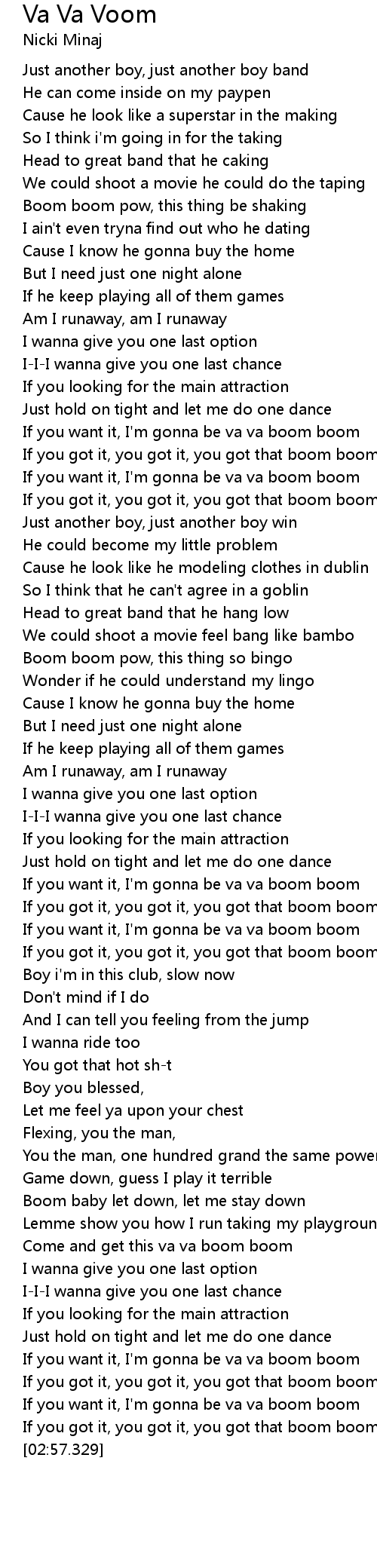 If you want it, I'm gonna be va va boom boom |