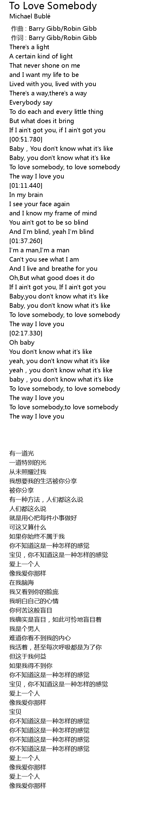 | [02:41.380] | To love somebody, to love somebody |