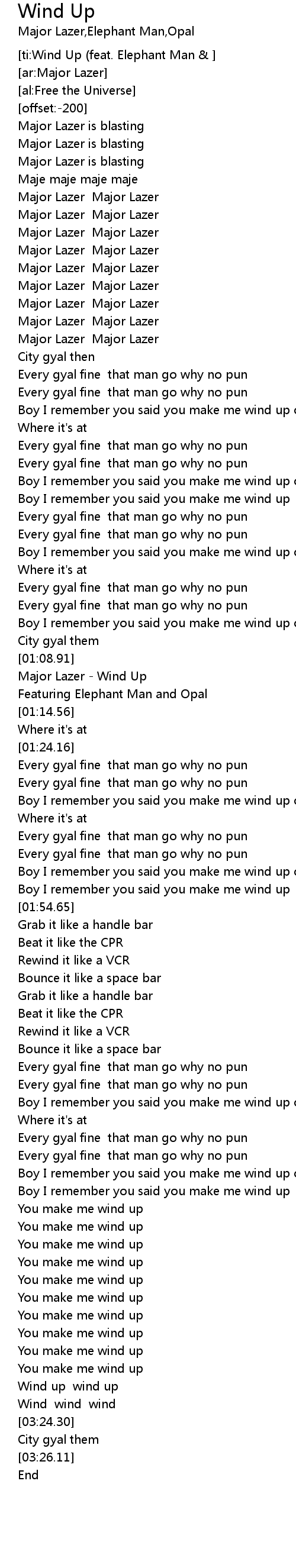 [ti:Wind Up (feat. Elephant Man & ] |