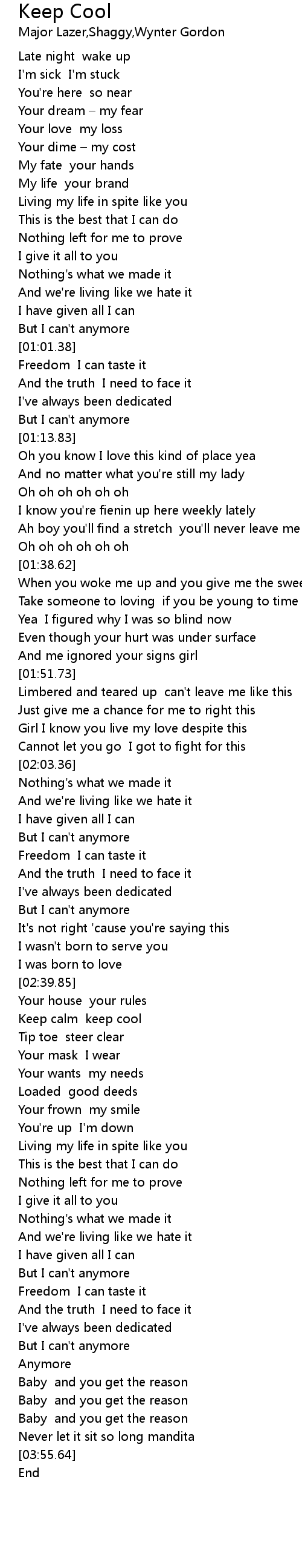 | [03:44.18] | Baby and you get the reason |