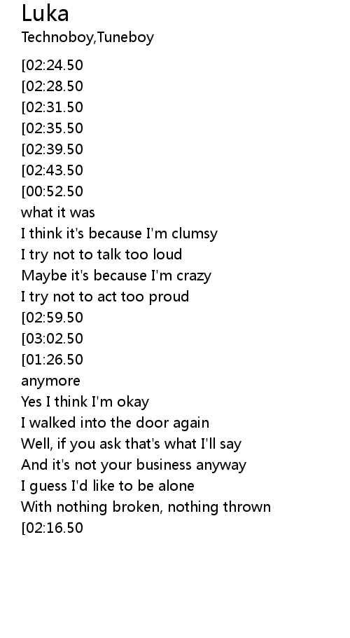 | [00:25.50][02:24.50] | My name is Luka |
