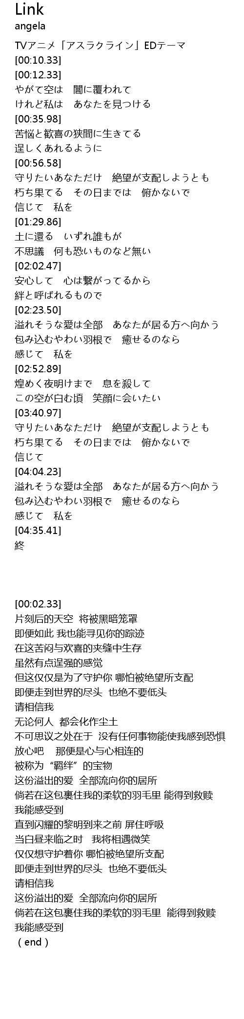 | [00:02.33] | TVアニメ「アスラクライン」EDテーマ |