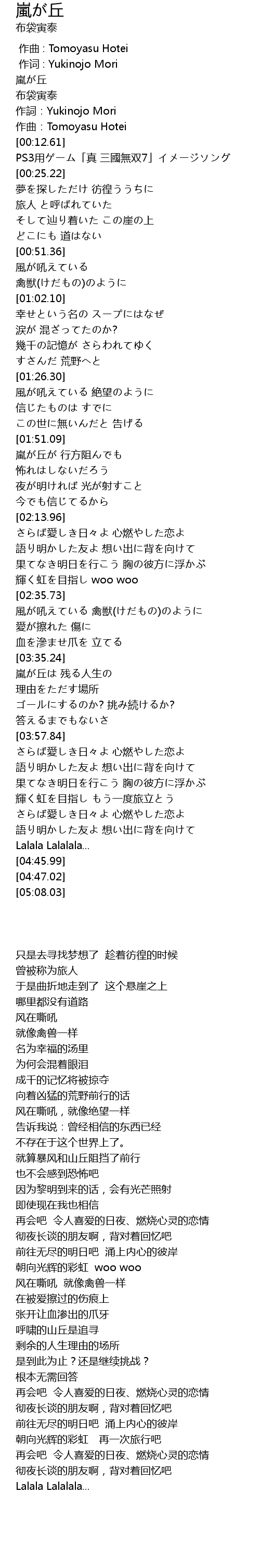 | [01:52.37] | 嵐が丘が 行方阻んでも |