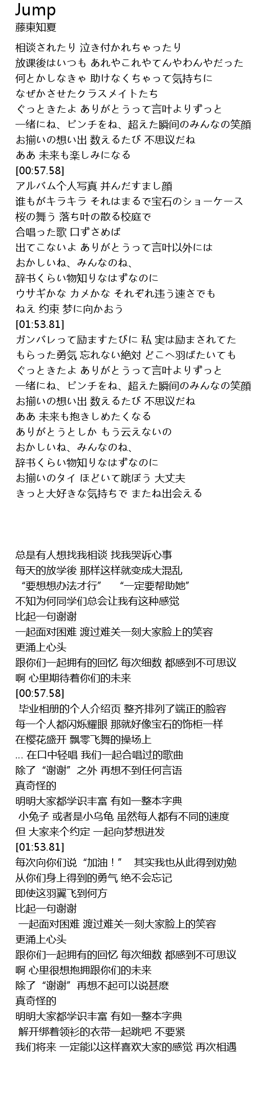 | [02:54.10] | 一绪にね、ピンチをね、超えた瞬间のみんなの笑顔 |