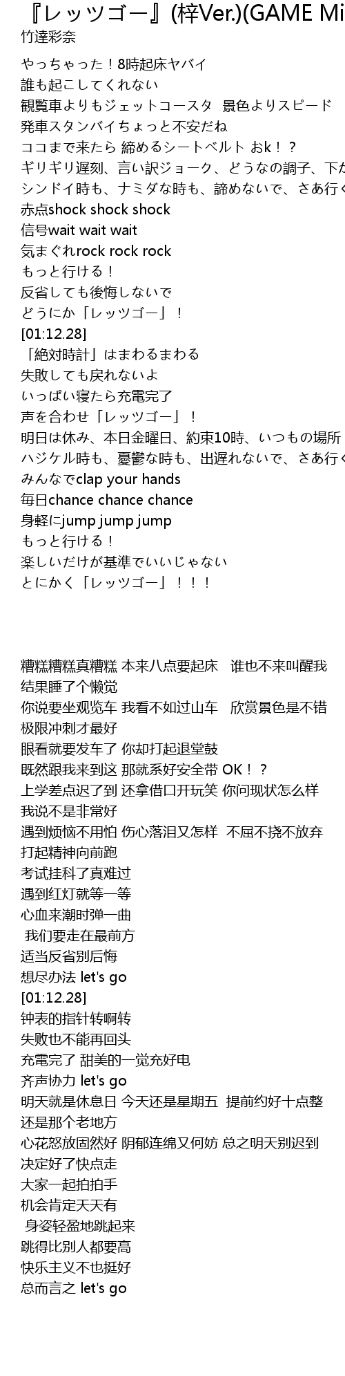 | [02:07.26] | とにかく「レッツゴー」!!! |