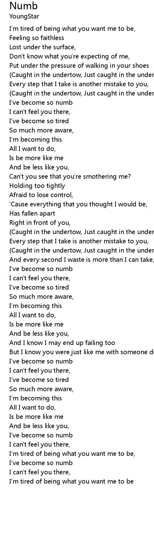 I've become so numb |