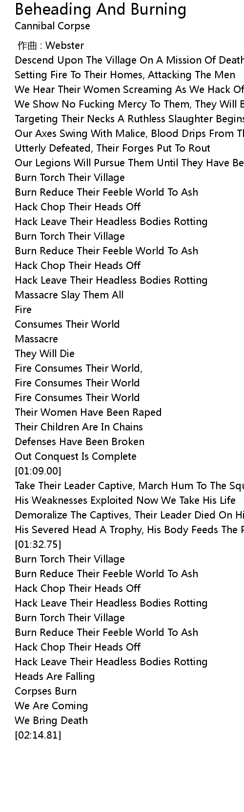 | [00:08.96] | We Hear Their Women Screaming As We Hack Off Their Heads |