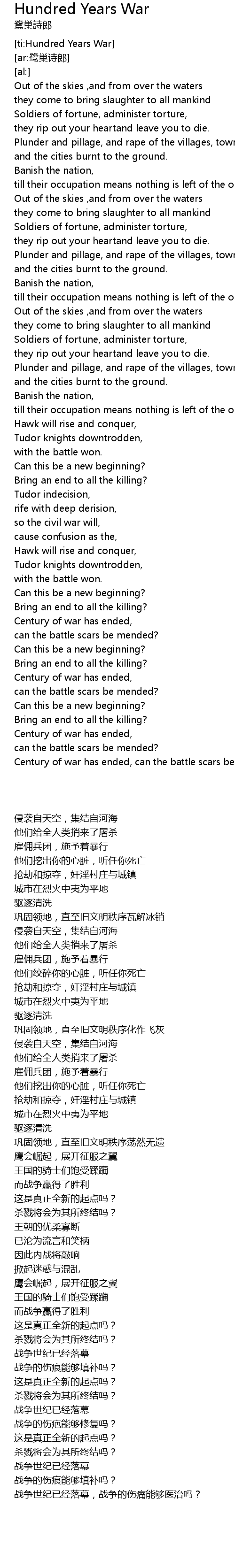 | [ti:Hundred Years War] | |