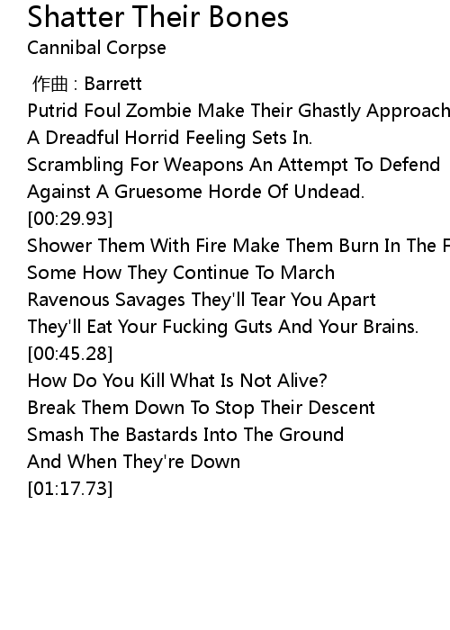 | [00:41.92] | They' ll Eat Your Fucking Guts And Your Brains. |