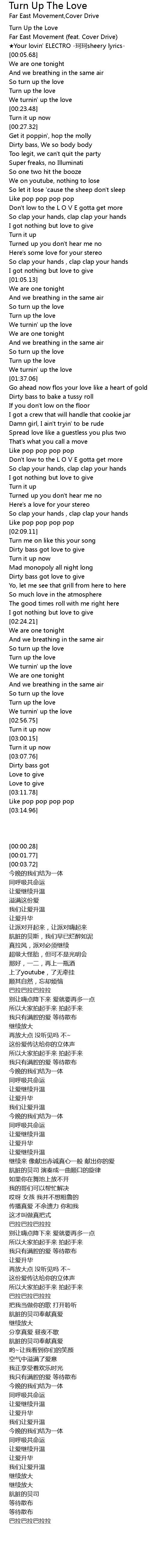 | [00:00.28] | Turn Up the Love |