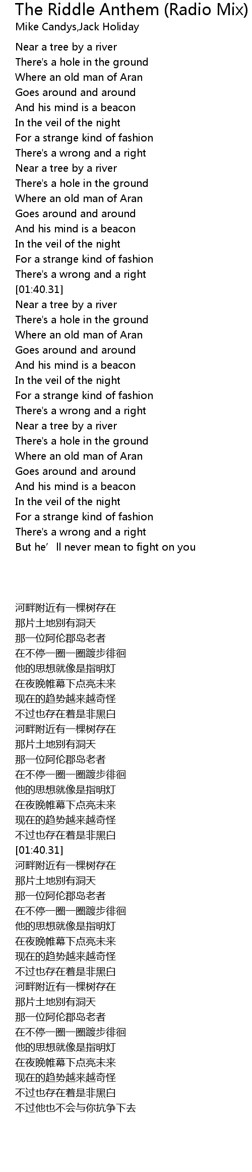 | Song | The Riddle Anthem (Radio Mix) |