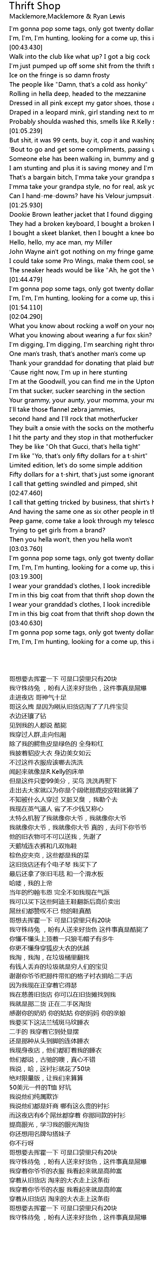 | [00:46.490] | I'm just pumped up off some shit from the thrift shop |