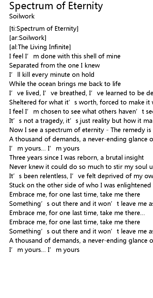 | [01:03.55] | Now I see a spectrum of eternity - The remedy is yours |