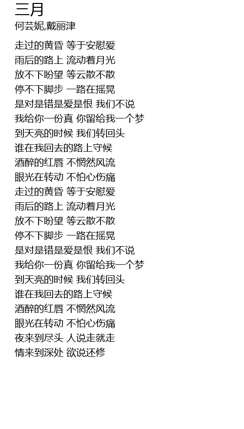 | [02:22.04] | 雨后的路上 流动着月光 |