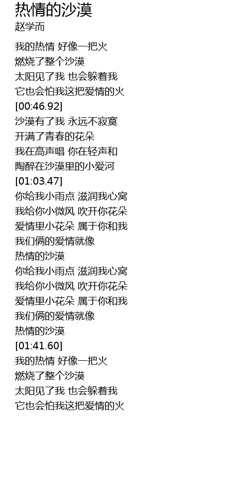 | [00:59.11] | 陶醉在沙漠里的小爱河 |