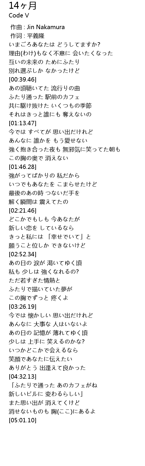| [00:13.49] | いまごろあなたは どうしてますか? |