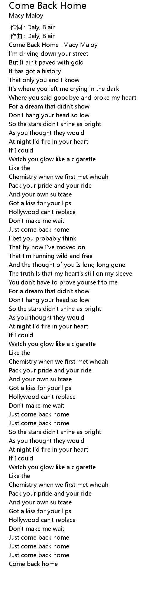 | [00:00.431] | Come Back Home Macy Maloy |