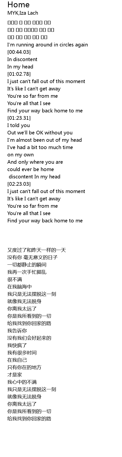 | [01:18.86] | Find your way back home to me |