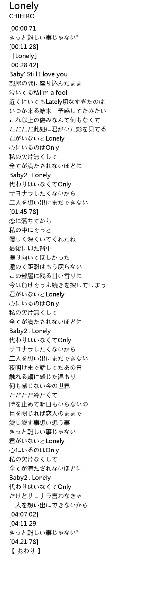 | [00:14.73] | 「Lonely」 |