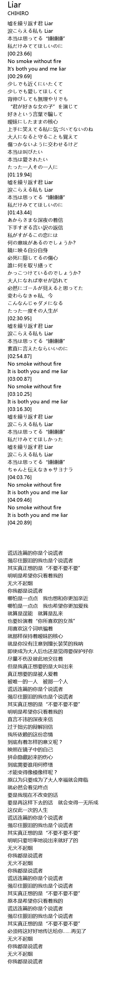 | [03:17.47] | 嘘を繰り返す君 Liar |