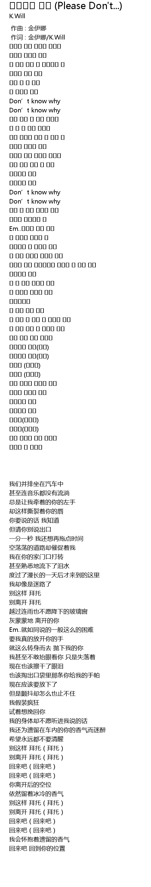 | [00:01.00] | 作词 : 金伊娜/K.Will |