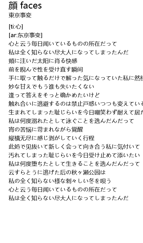 | Song | 顔 faces |