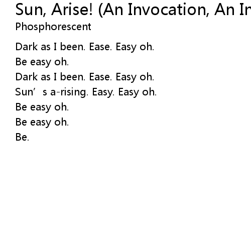 | Sun’s a-rising. Easy. Easy oh. | |