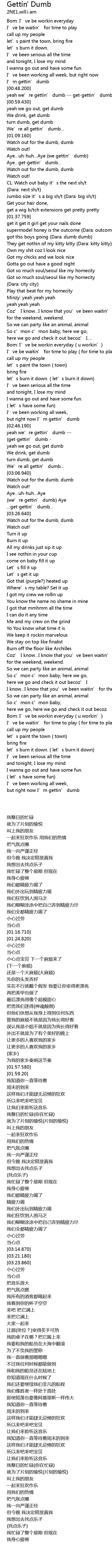 | [00:53.500] | yeah we' re gettin' dumb getgettin' dumb |