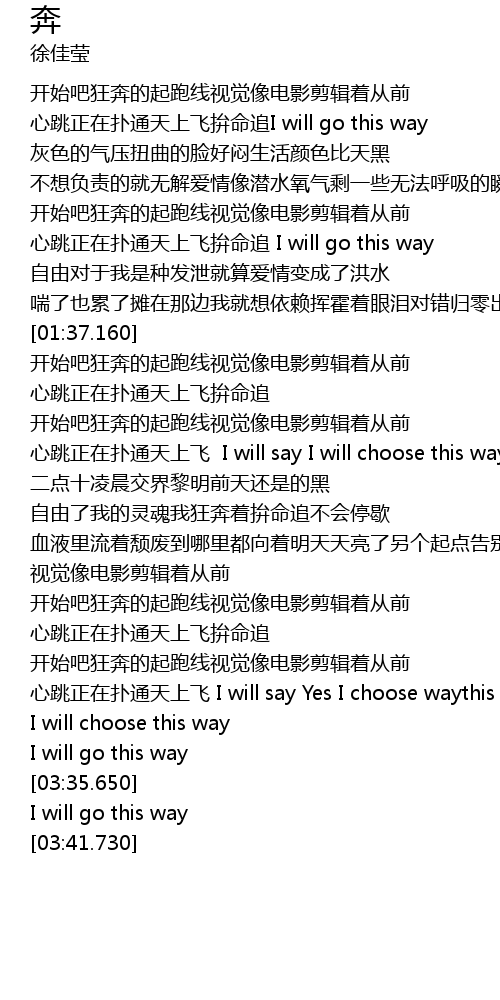 | [01:38.230] | 开始吧狂奔的起跑线视觉像电影剪辑着从前 |