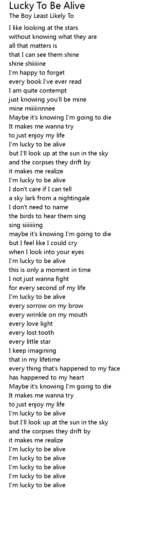 I'm lucky to be alive |