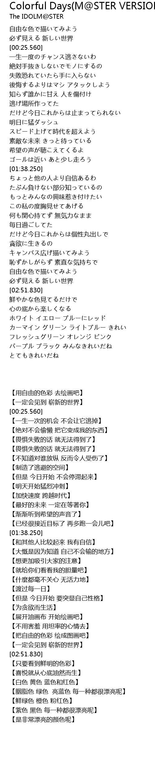 | [03:16.190] | ホワイト イエロー ブルーにレッド |