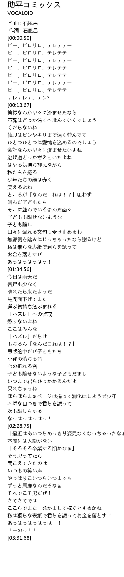 | [03:23.02] | 私は猥らな表紙で君らを誘ってお金を落とすぜ |