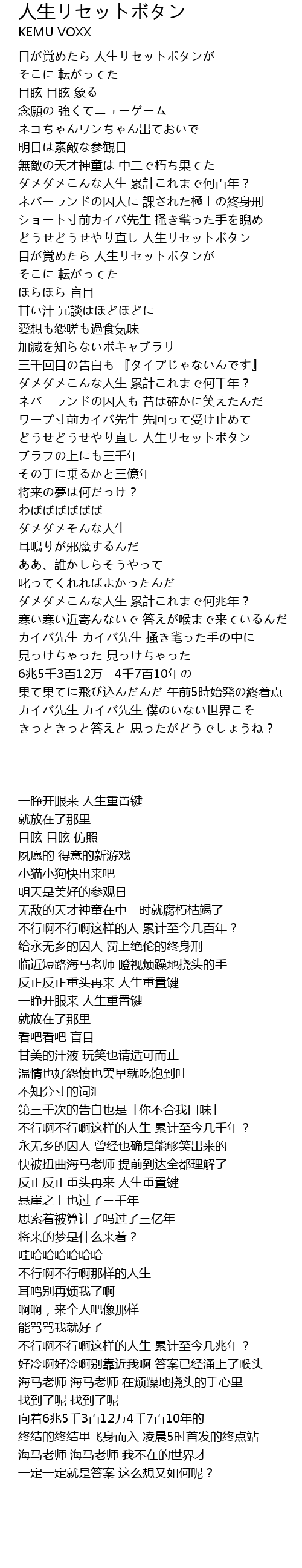 | [02:00.93] | どうせどうせやり直し 人生リセットボタン |