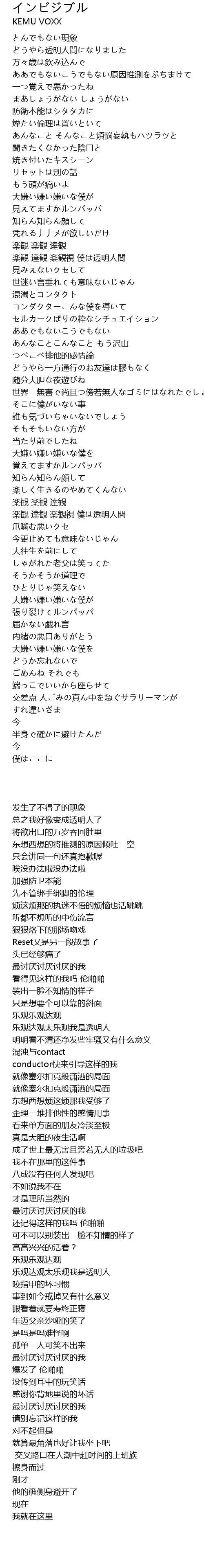 | [01:58.850] | 楽観 達観 楽観視 僕は透明人間 |