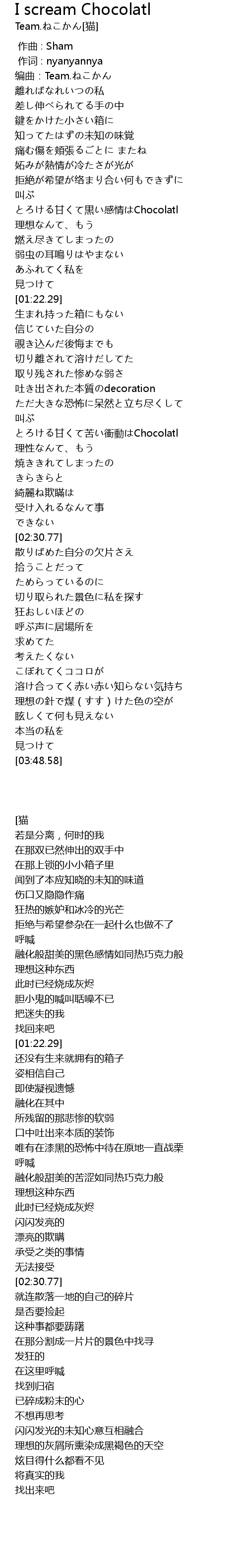 | [02:04.46] | とろける甘くて苦い衝動はChocolatl |