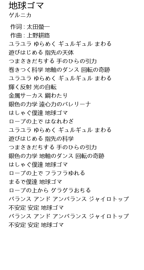 | [02:50.19] | 不安定 安定 地球ゴマ |