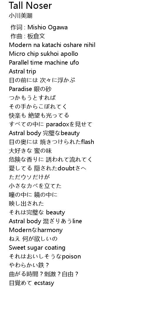 | [00:00.000] | 作词 : Mishio Ogawa |