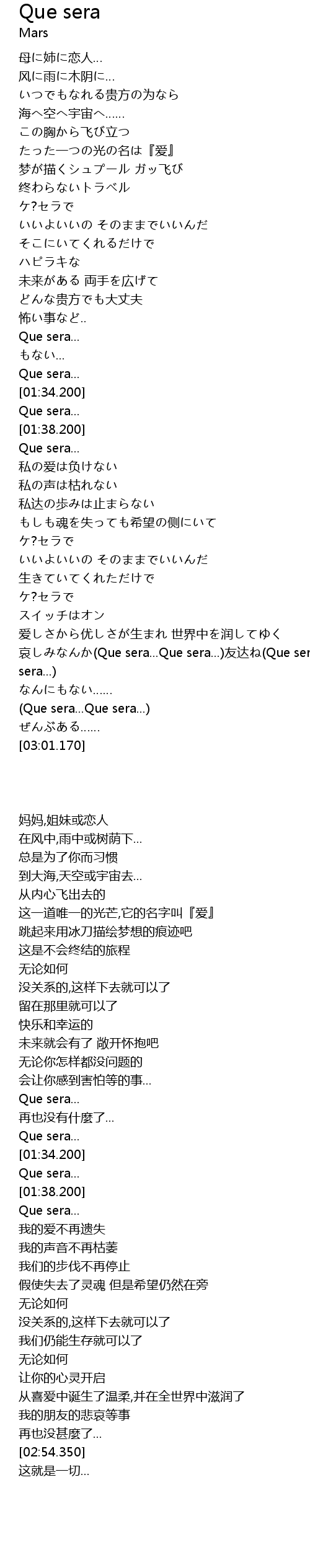 | [02:54.350] | Que sera... Que sera... |