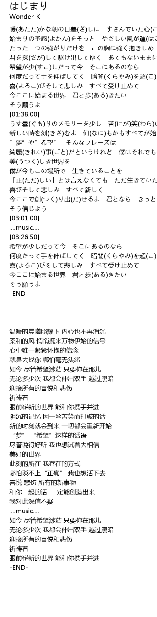 | [03:57.47] | 今ここに始まる世界 君と歩(ある)きたい |