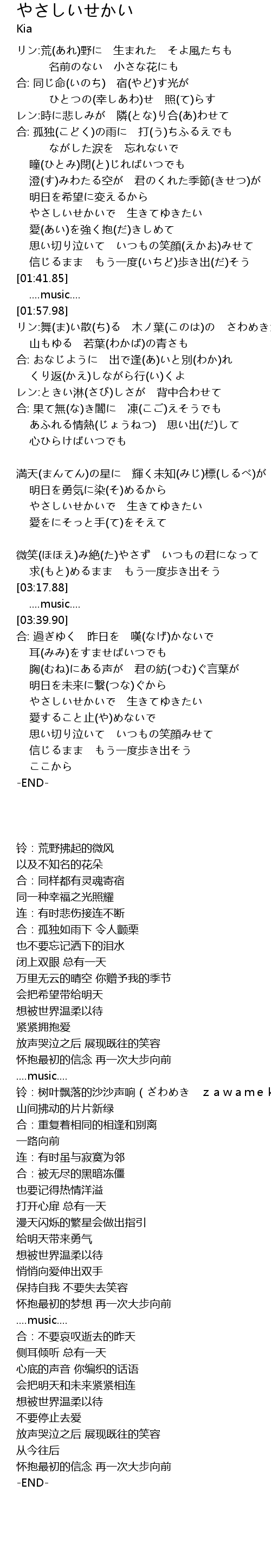 | [02:53.00] | やさしいせかいで 生きてゆきたい |