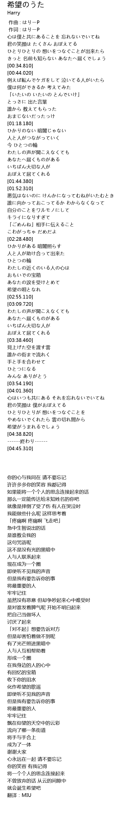 作词 : はりーP |