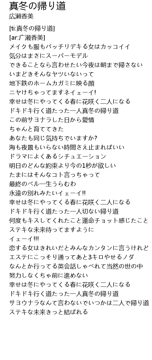 | [03:56.206] | ドキドキ行く道たった一人真冬の帰り道 |
