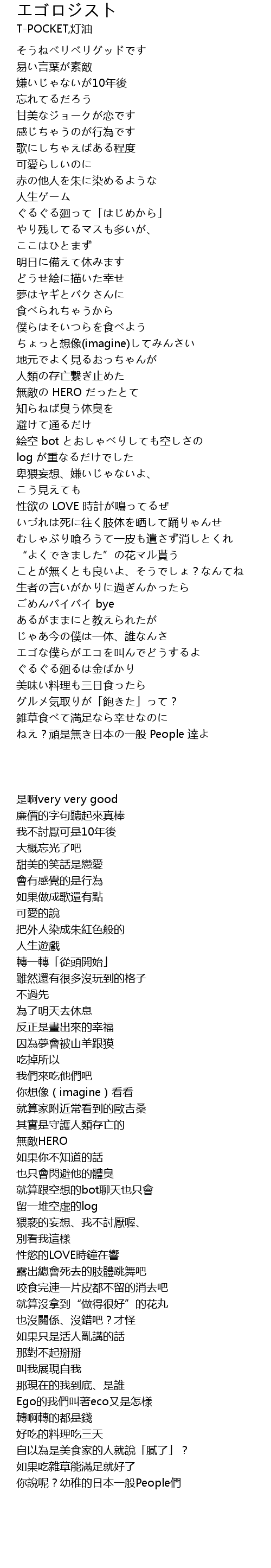| [03:24.71] | エゴな僕らがエコを叫んでどうするよ |