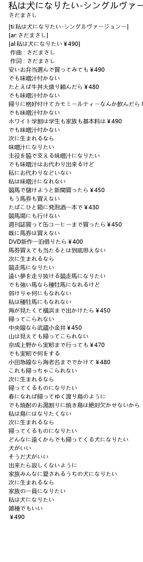 | [ti:私は犬になりたい-シングルヴァージョンー] | |