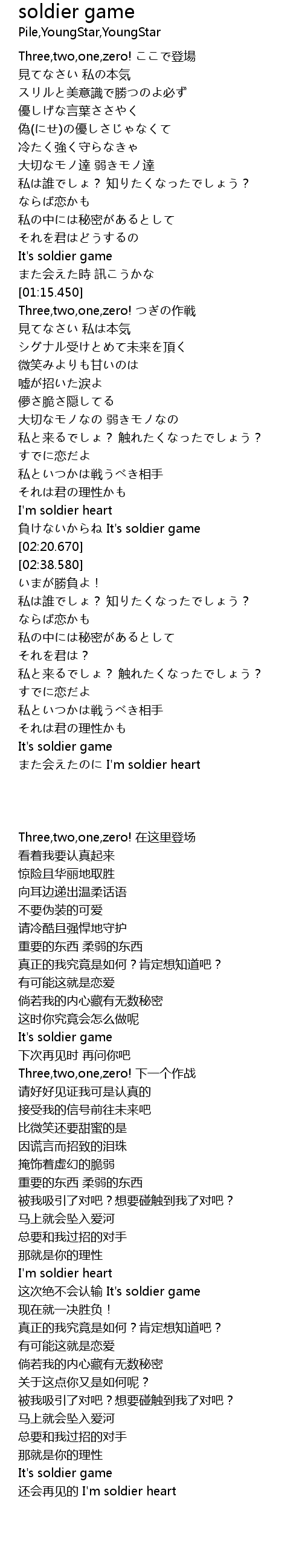 | [03:14.300] | また会えたのに I'm soldier heart |